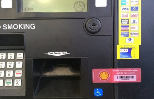 오는 길에 underlayment를 $2로 사야해서 주유소에 들렀다. ATM에 데빗카드를 넣고 빼라고 해서 뺐는데 카드가 읽히지 않는다.