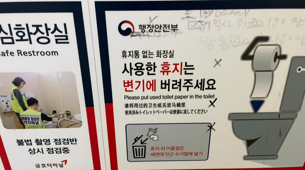 얼마나 변기가 막혔으면 휴지도, 휴지통도 없애버렸을까 싶기는 하다만, 옛날처럼 휴지가 당연히 있겠지 하고 일을 봤으면 낭패를 볼 뻔했다. 한국은 윤통시절에 어디로 갔던 것일까 싶다.