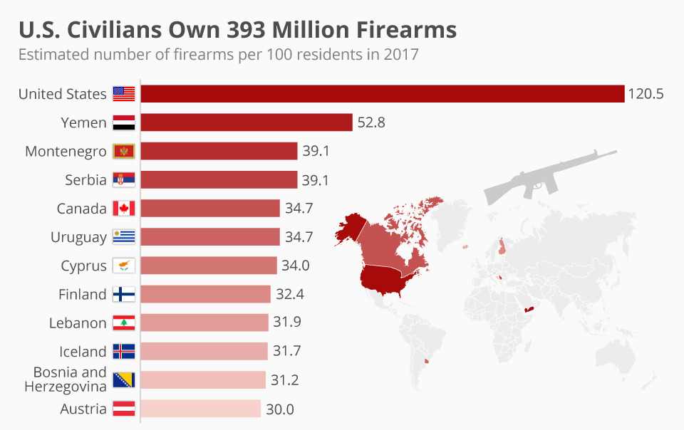 화목해야할 가정에 깊숙이 파고든 권총, 소총, 심지어 기관총까지 자유롭게 살 수 있는 나라가 미국이다.