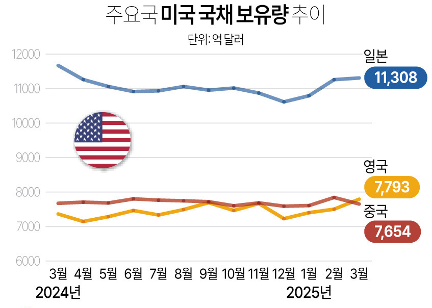 달러화 기축통화체제를 단번에 무너뜨릴 수 있는 미국채 2위 보유국인 중국이 팔고 있어 작년 3위로 내려앉았다. 그래서 서양 우위가 아니라 열세가 되었다는 주장이다. 트럼프는 망나니가 아니라 이런 미국 현실을 반영하는 인물이라고 한다.