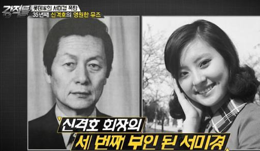 미스롯데였던 서미경이 세째 부인이라고 당당하게 TV 조선은 부른다. 38살 어린 둘째 첩년이다.